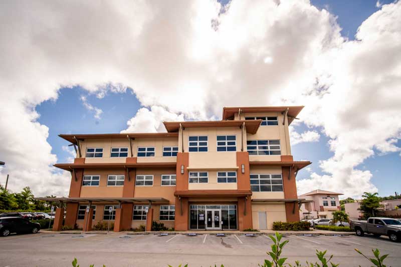 Building 3 is located at 509 South Marine Corps Drive, Tamuning, Guam 96913. It is a 2-storey multiple tenant reinforced concrete structure with a gross building area of 22,352 square feet. It was completed in 2017. It houses a variety of tenants including a coffee shop, a credit union ATM, a telecommunications retail center, an insurance agency, a federal recruiting office, an international shipping agency, a fitness facility, and administrative offices. The building is ADA compliant and has impact resistant glass windows, a drive through facility, an emergency 500KW power generator (with ATS), an elevator, over 100 parking stalls plus an additional 100 employee parking stalls (with solar powered lighting) in common use at the rear. The building is semi-fenced and has on-site security, a CCTV surveillance system, landscaping, trash and cardboard disposal services.
